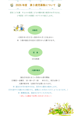 満3歳児クラスの受入がスタートました。園までお問い合わせください。